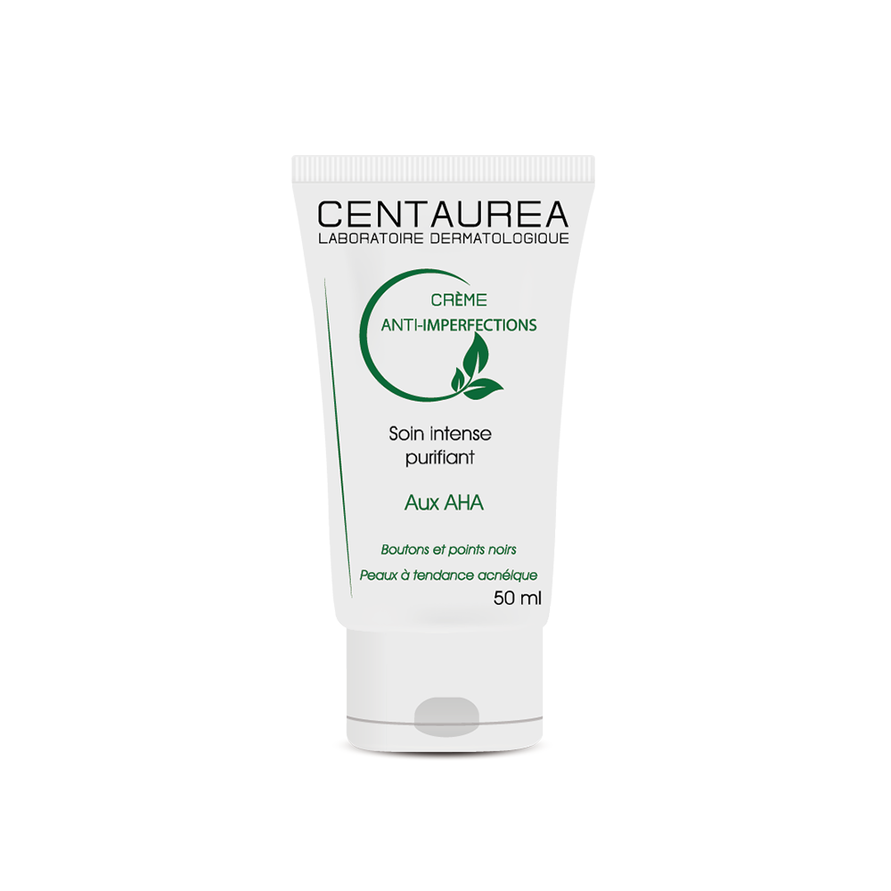 Les crème anti-imperfections CENTAUREA, spécifiquement élabore pour le soin des peaux a tendance acnéique, est un soin régulateur, apaise les boutons enflammés, favorise l’élimination des imperfections et limite la formation des marques résiduelles (taches et cicatrices) L’association Salicylate de zinc (BHA) et l’extrait de Sabal réduit l’excès de sébum L’amélioration est visible des le premier mois Texture non grasse, idéale comme base de maquillage.