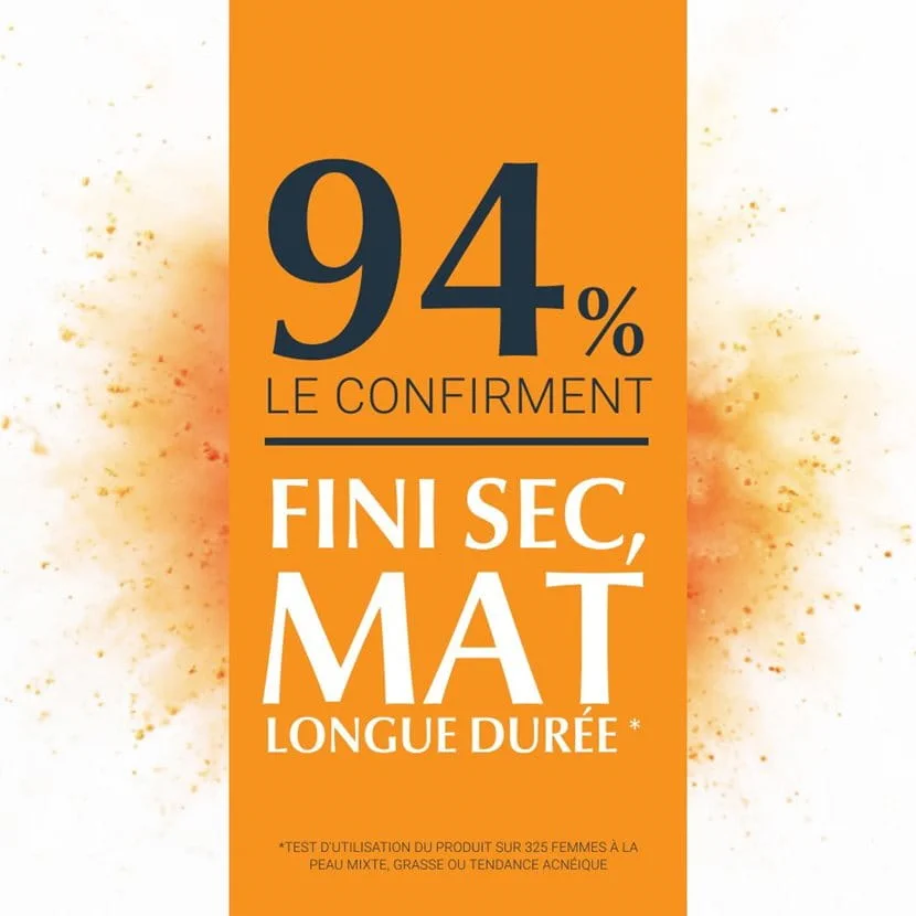Sa texture gel-crème ultra légère, non grasse et non collante, pénètre rapidement sans laisser de film blanc, pour un fini mat longue durée.