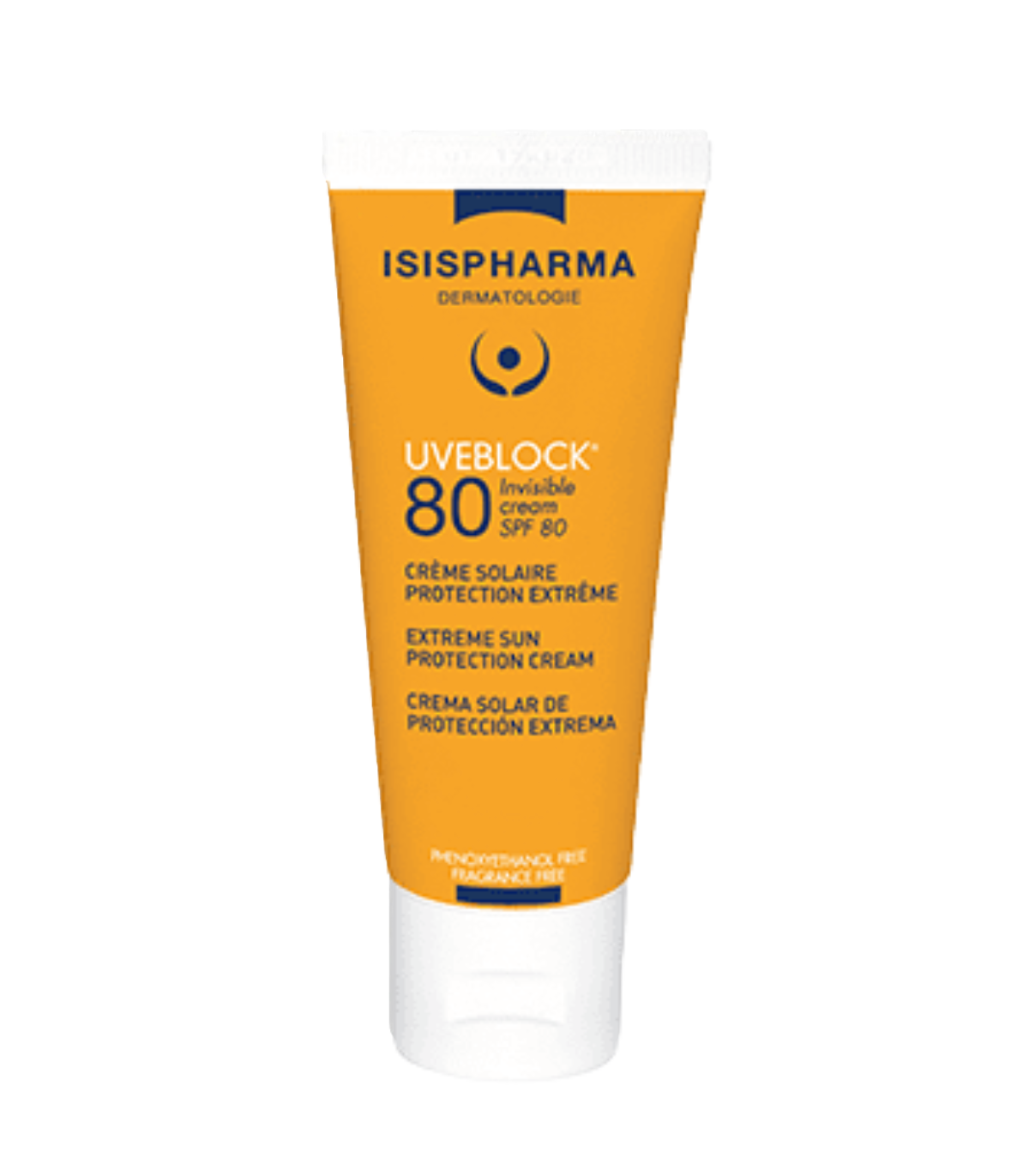 ISISPHARMA Uveblock 80+ Invisible est un fluide solaire ultra-léger offrant une protection SPF 80+ idéale pour les peaux sensibles ou exposées à un soleil intense. Sa texture transparente ne laisse aucune trace blanche, ne colle pas et convient à tous les types de peau, même grasse ou mixte.