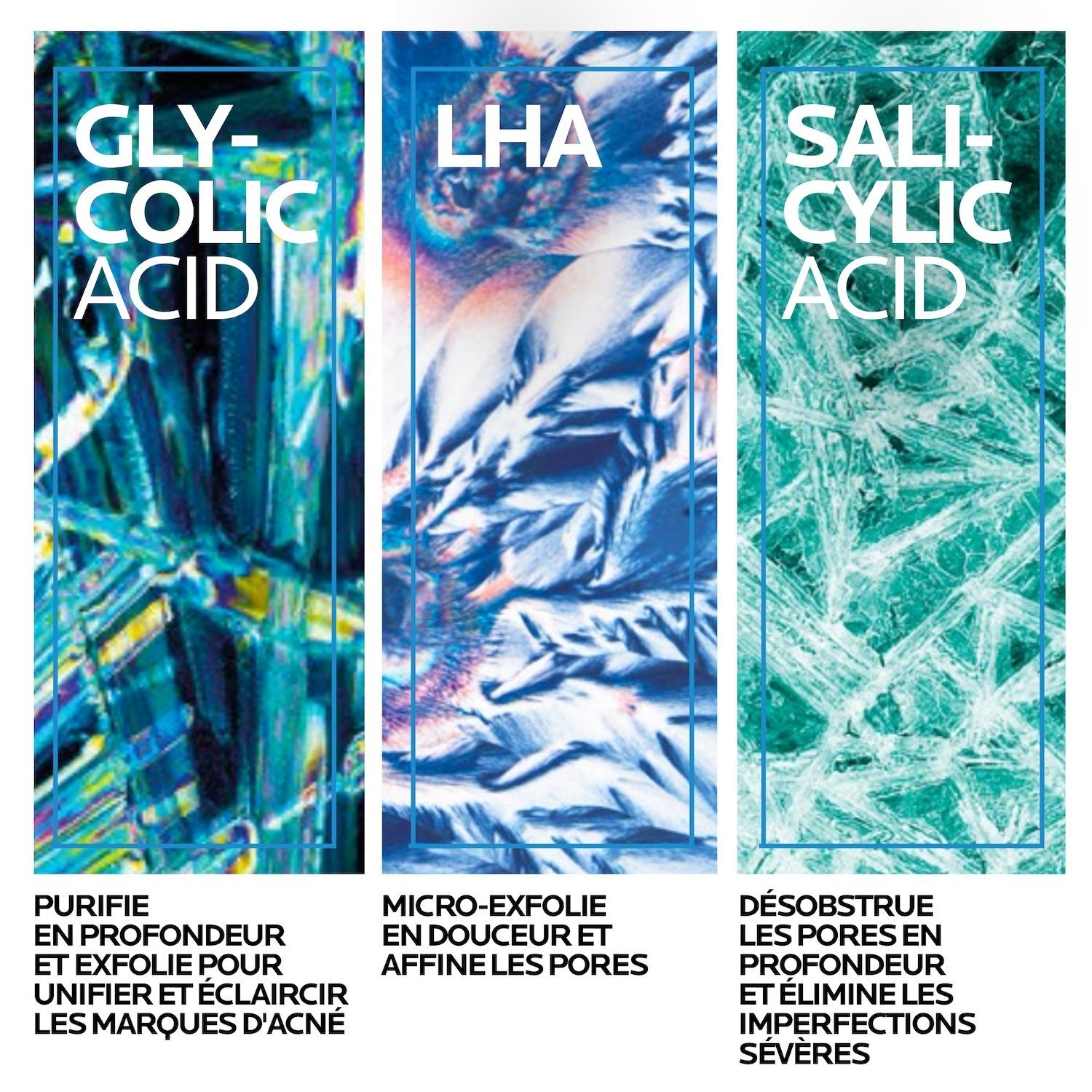 Ingrédients Clés : Trio d’acides exfoliants (acide salicylique, acide glycolique, LHA) | Niacinamide et Eau thermale de la Roche-Posay pour apaiser et soulager.