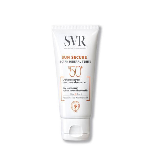 SUN SECURE Écran Minéral Teinté SPF50+ est un soin qui allie très haute protection SPF50+ 100% minérale et maquillage. Il convient aux peaux intolérantes mais aussi à tous ceux qui souhaitent se maquiller au soleil toute l’année. Grâce à sa bonne couvrance, les imperfections sont camouflées, le teint unifié toute la journée. Il existe en deux versions : crème toucher sec peaux normales à mixtes et crème confort peaux sèches à très sèches